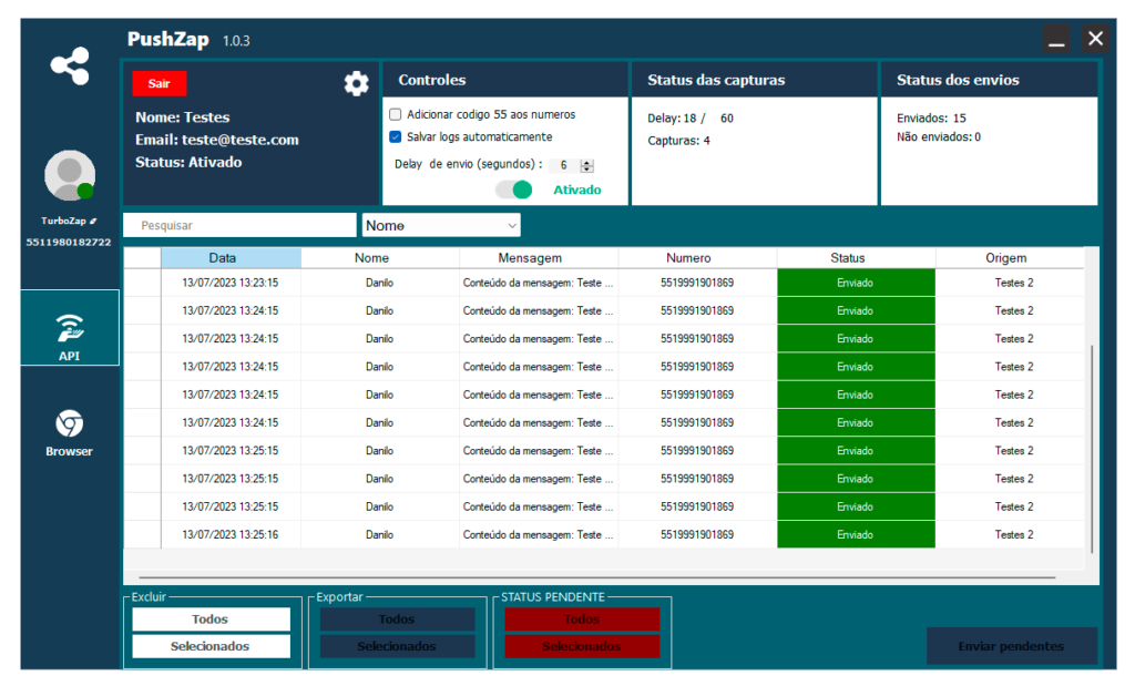 Sim. A cada 60 segundos o software faz uma leitura do painel e puxa todos os novos contatos e dados que chegaram via webhook. Dessa forma ele cria uma fila de envio, e começa a disparar conforme as configurações no software, como funil de mensagem por exemplo.